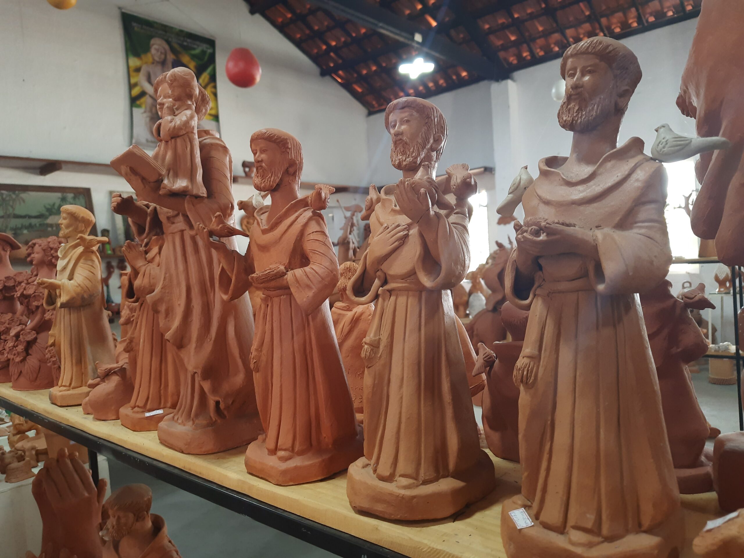 Já na Mata Norte, a tradição da argila moldada à mão deu origem a um dos mais reconhecidos polos de cerâmica figurativa e utilitária do país. O artesanato de barro de Tracunhaém é resultado da tradição de origem indígena com influências portuguesas que atravessa gerações. A produção no município é caracterizada pela variedade de figuras sacras e cenas do cotidiano regional, tal como feiras, celebrações festivas e cenas rurais, além de pinhas e animais – entre eles, o icônico leão de juba encaracolada, marca registrada do trabalho da família do Mestre Nuca de Tracunhaém. Destaque também para os itens decorativos e os utilitários, a exemplo de panelas, vasos, tigelas e potes, que ajudam a movimentar a economia criativa da cidade.