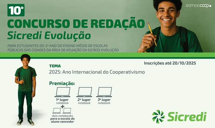 Estão abertas as inscrições para a 10ª edição do Concurso de Redação da Sicredi Evolução. O concurso visa incentivar a produção literária e estimular o pensamento crítico entre os estudantes do terceiro ano do ensino médio de escolas públicas da Paraíba, dentro da área de atuação da cooperativa.