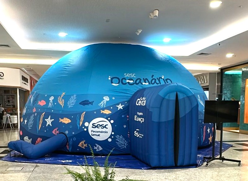 Com estrutura inflável em formato de cúpula e tecnologia de projeção em 180°, o Sesc Oceanário oferece uma experiência imersiva e educativa voltada para estudantes, professores e o público em geral. Os conteúdos, alinhados aos Objetivos de Desenvolvimento Sustentável (ODS) da ONU, abordam temas como biodiversidade marinha, Amazônia Azul, mudanças climáticas e o papel do Brasil na preservação dos ecossistemas costeiros e oceânicos.