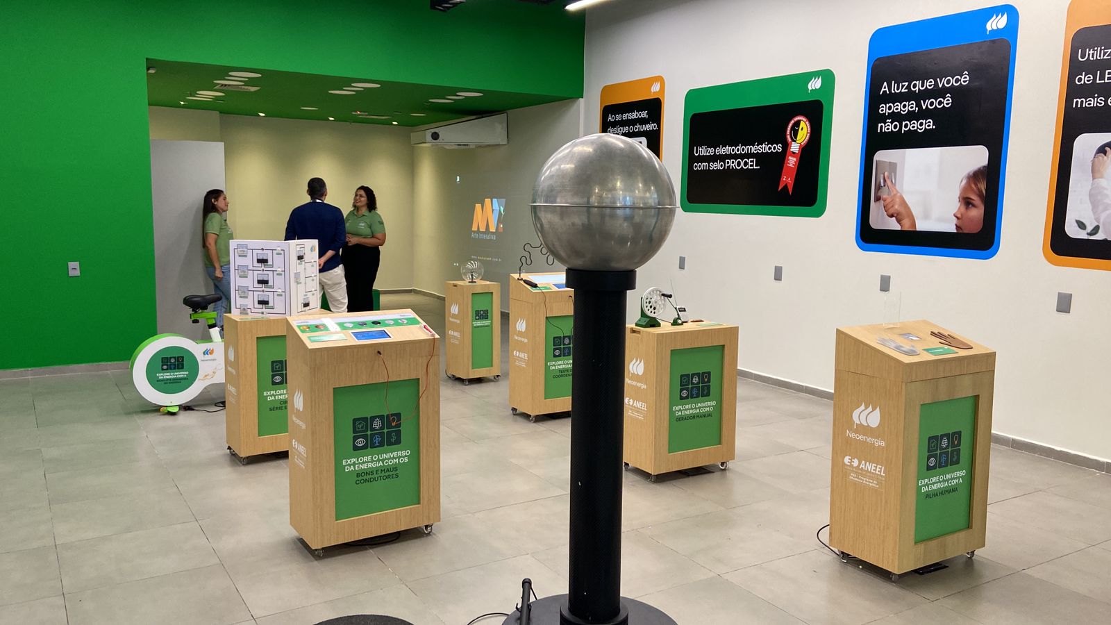“Os visitantes irão se encantar com os experimentos oferecidos na Exposição Interativa. Crianças a partir de 6 anos de idade são convidadas a compreender, através de vídeos, estímulos sensoriais, experimentos físicos e aulas dialogadas, o que é a energia elétrica, como é gerada, transmitida de um ponto a outro em alta tensão e distribuída para consumo entre os clientes de pequeno e grande porte, além de orientações didáticas de como é possível utilizar energia elétrica de forma consciente, segura e sustentável”, explica Ana Christina Mascarenhas, superintendente do Programa de Eficiência Energética da Neoenergia.