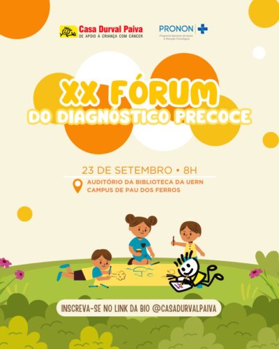 A Casa Durval Paiva abriu inscrições para o XX Fórum do Diagnóstico Precoce. O evento vai ocorrer no dia 23 de setembro e será realizado no auditório da biblioteca da UERN – Campus de Pau dos Ferros (RN), a partir das 8h, com o objetivo de disseminar informações acerca do câncer infantojuvenil para profissionais e […]