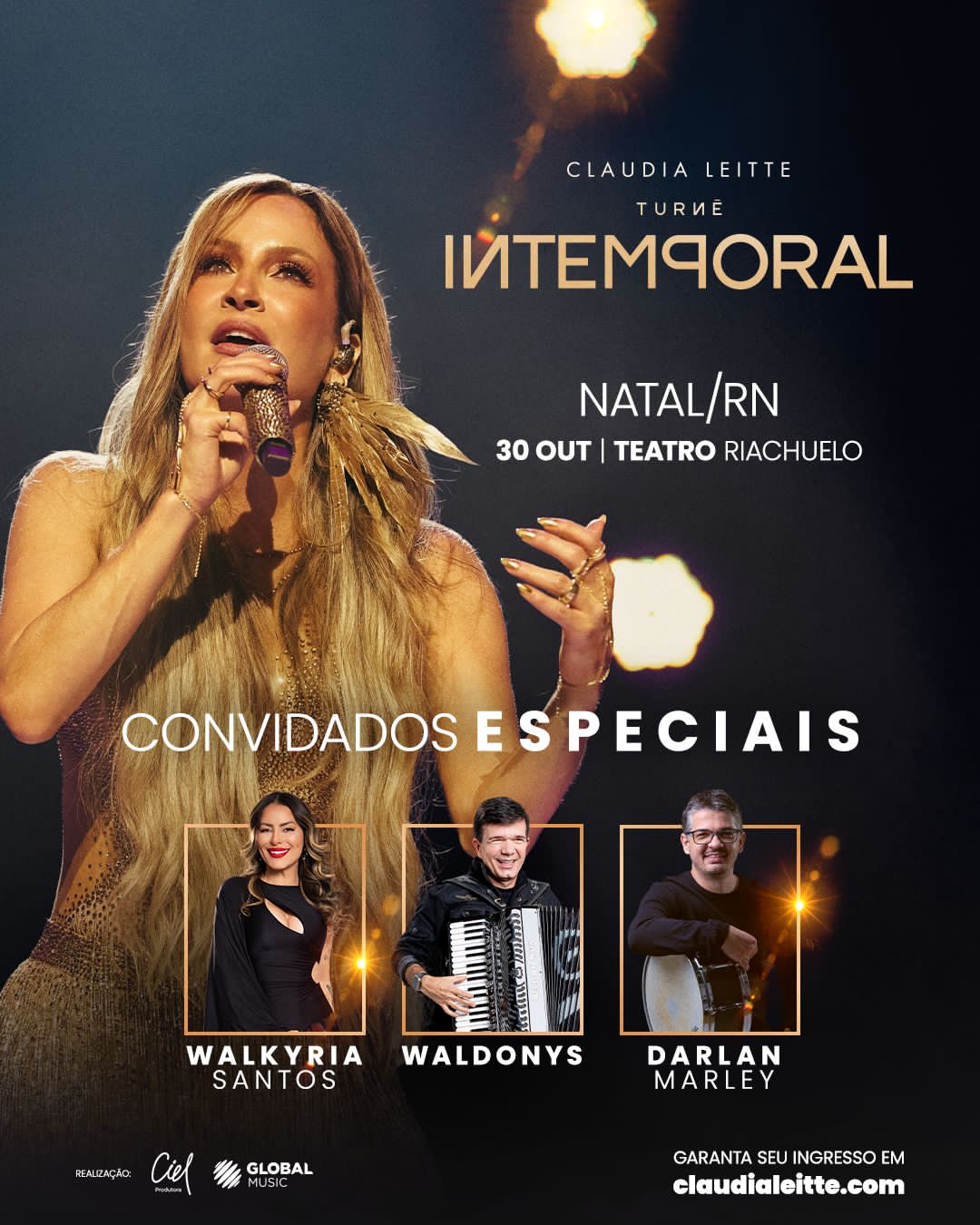 Nesta edição potiguar, a apresentação ganha um brilho ainda mais especial com as participações de Walkyria Santos, Waldonys e Darlan Marley, nomes consagrados da música nordestina que se unem a Claudia em momentos inéditos no palco.