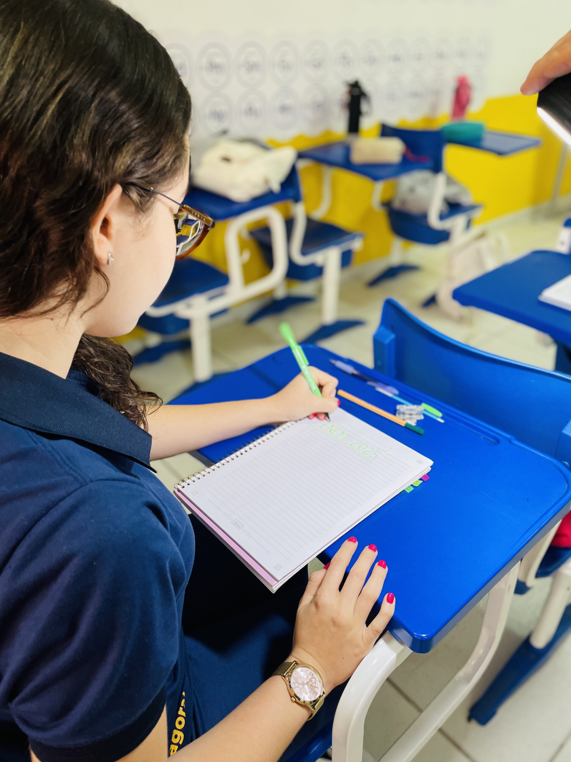 Outro ponto importante enfatizado pela psicóloga é o equilíbrio. Segundo ela, durante esta semana, a grade da escola mescla revisões objetivas das áreas do segundo dia com intervalos direcionados, atividades de descontração e momentos de leveza, estrategicamente planejados para aliviar a tensão e evitar o esgotamento. A orientação se estende para a rotina em casa, com a recomendação de priorizar uma boa alimentação, noites de sono reparadoras e momentos de lazer.