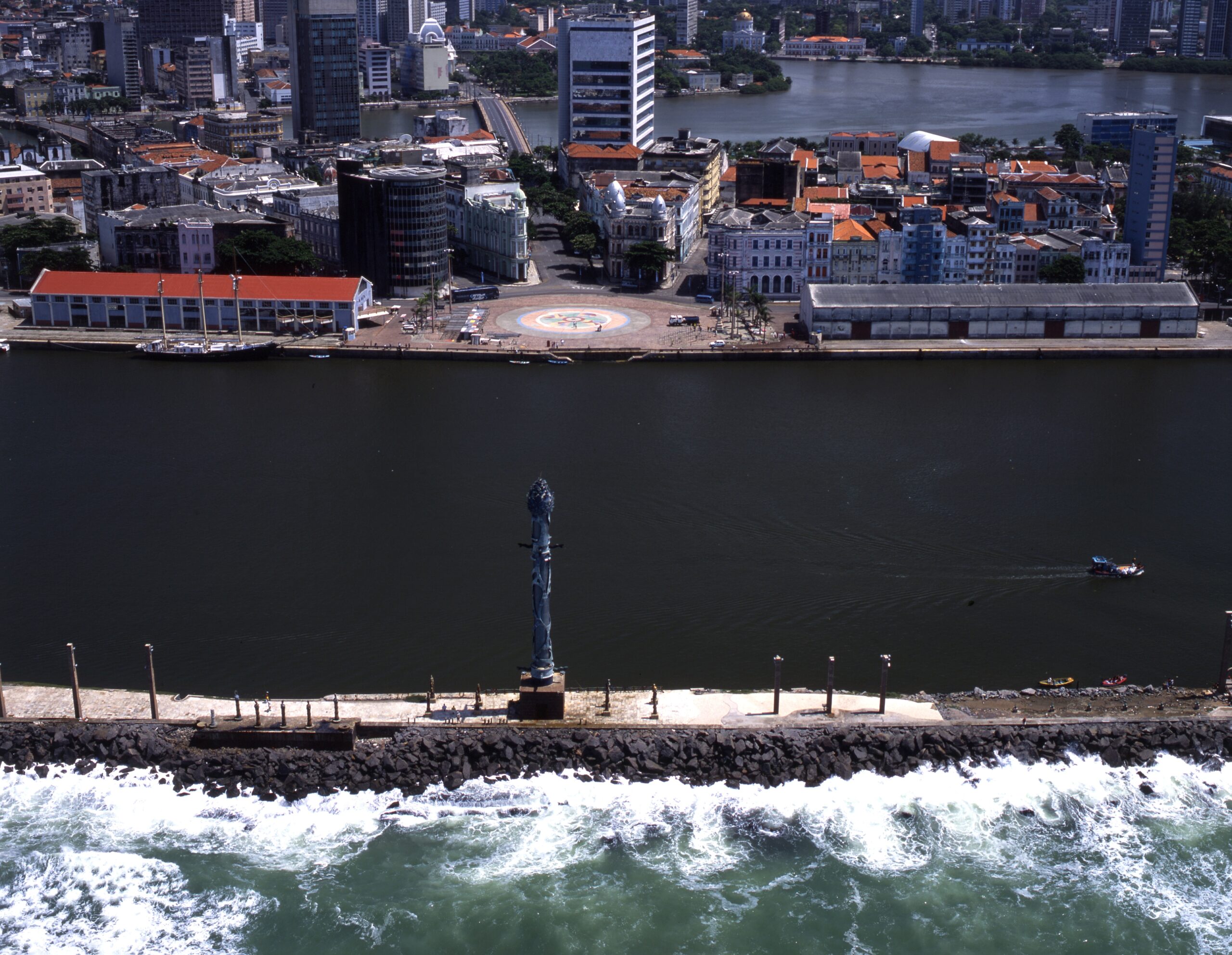 No molhe entre o Rio Capibaribe e o Oceano Atlântico, espaço se tornou Patrimônio Cultural Material da cidade reunindo acervo de 100 obras, com destaque para a emblemática Coluna de Cristal. Foto: Acervo OFB