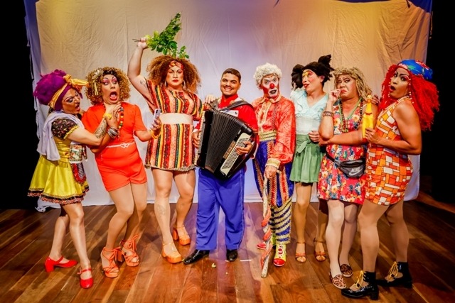 O elenco reúne nomes conhecidos da comédia paraibana: Maria do Bu (Tony Silva), Selma Camburão (Raymon Farias), Verônica (Aluísio Sousa), Nildinha Bolo Fofo (Miguel Reberth), Dengoso (Edilson Alves), Tapeba do Cuminho (Epitácio Souza), Amapola Furacão (Erick Souza), além do músico e ator Matheus Henrique. A direção é assinada por Edilson Alves, e o texto nasce de um processo criativo coletivo, garantindo originalidade e autenticidade à montagem.