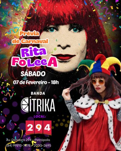 Show “Rita Foleea” mistura rock e ritmos carnavalescos em homenagem a Rita Lee na nova prévia de carnaval de Natal/RN A banda Cítrika é a atração principal do bloco Rita Leenda no Carnaval 2026, levando ao público o show especial “Rita Foleea”, criado exclusivamente para a prévia carnavalesca do mais novo bloco de Natal/RN que […]