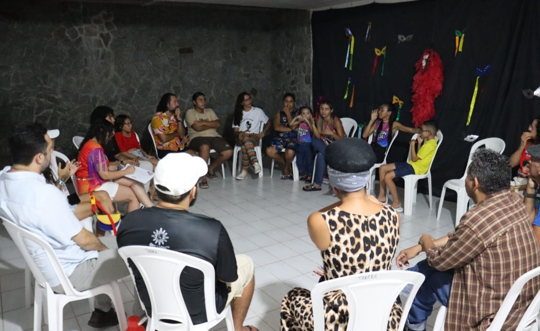A abertura da programação aconteceu no Ponto de Cultura Baixinha Berço das Artes, reunindo fazedores de cultura, representantes de blocos carnavalescos e comunidade para debater estratégias de valorização da cultura popular e do protagonismo comunitário no território.