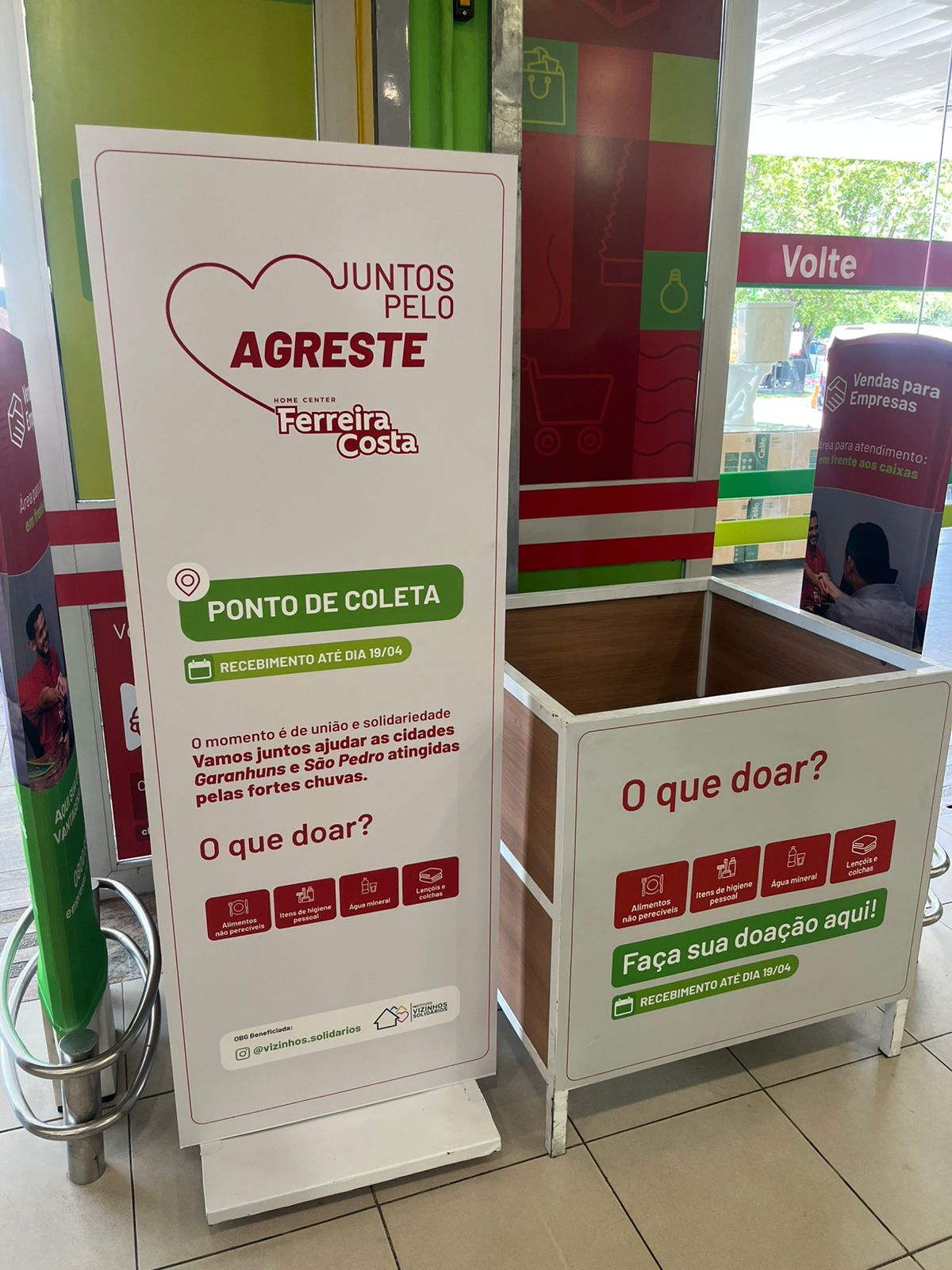 O ponto de coleta está devidamente sinalizado na frente da loja Ferreira Costa. A organização reforça que o cronograma estendido até abril visa garantir um suporte contínuo durante toda a fase de recuperação das cidades atingidas, e que a união de todos é fundamental para reconstruir o que foi perdido.