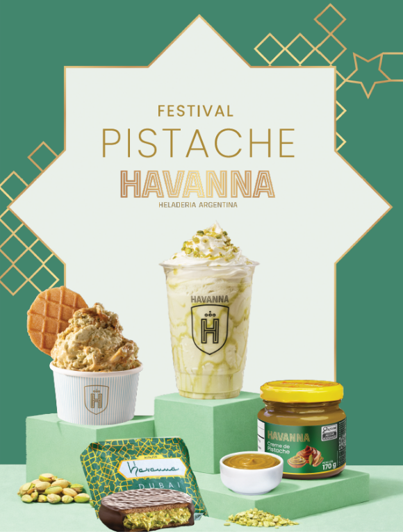 A partir de segunda-feira (20), o Festival de Pistache transforma as unidades da rede em ambientes de experimentação. As Cafeterias e Heladerias passam a oferecer sobremesas exclusivas com a nova linha. Além do alfajor e creme, nas cafeterias, os clientes também poderão provar a sobremesa de churros com o creme de pistache, a partir de R$ 19,95). Nas heladerias, o sabor Pistache Dubai também passa a integrar o portfólio de helados, disponível em diferentes formatos, incluindo copo, casquinha e milk-shake.