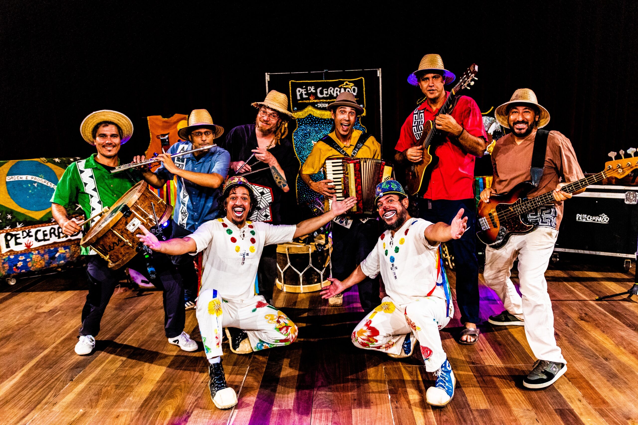 Formado por Pablo Ravi, Bruno Ribeiro, Bruno Berê, Davi Abreu, Fernando Rodrigues, Pedro Tupã, Luciano Dantas, Maurílio dos Santos e Carla Landim, o Pé de Cerrado é conhecido por suas apresentações vibrantes, cheias de musicalidade e teatralidade. No palco, o grupo transforma o espaço em um grande terreiro de celebração, misturando ritmos como bumba meu boi, maracatu, ciranda, coco, carimbó, frevo e baião em um repertório que convida o público a cantar, dançar e rir feito criança.