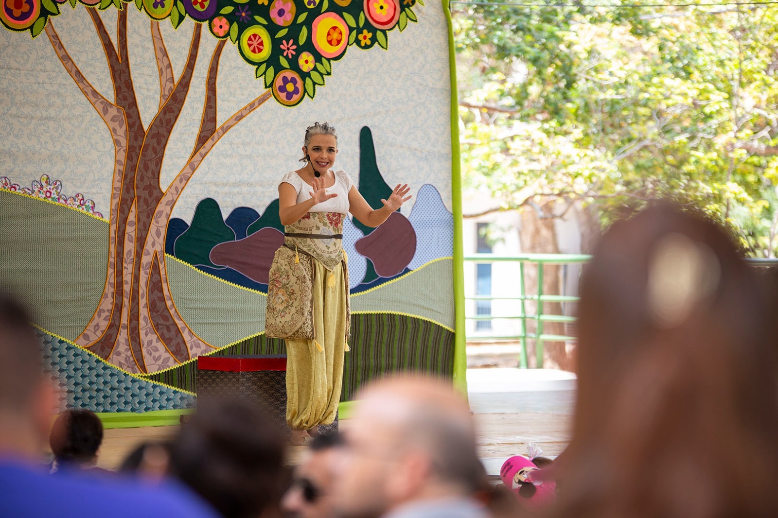 A atriz, através de histórias populares, estabelece uma relação direta com o público que interage com a trama de forma envolvente e divertida. As histórias “Os pássaros”, “A tartaruga e a fruta amarela”; “O pote vazio”, e “O país dos sonhos” ganham novas cores e são intercaladas com músicas e brincadeiras.